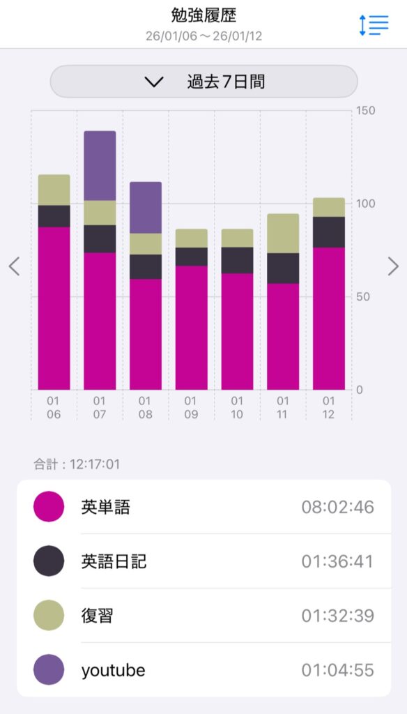 毎日学習記録アプリをつけていて、どのくらいやっているかも記録しています。